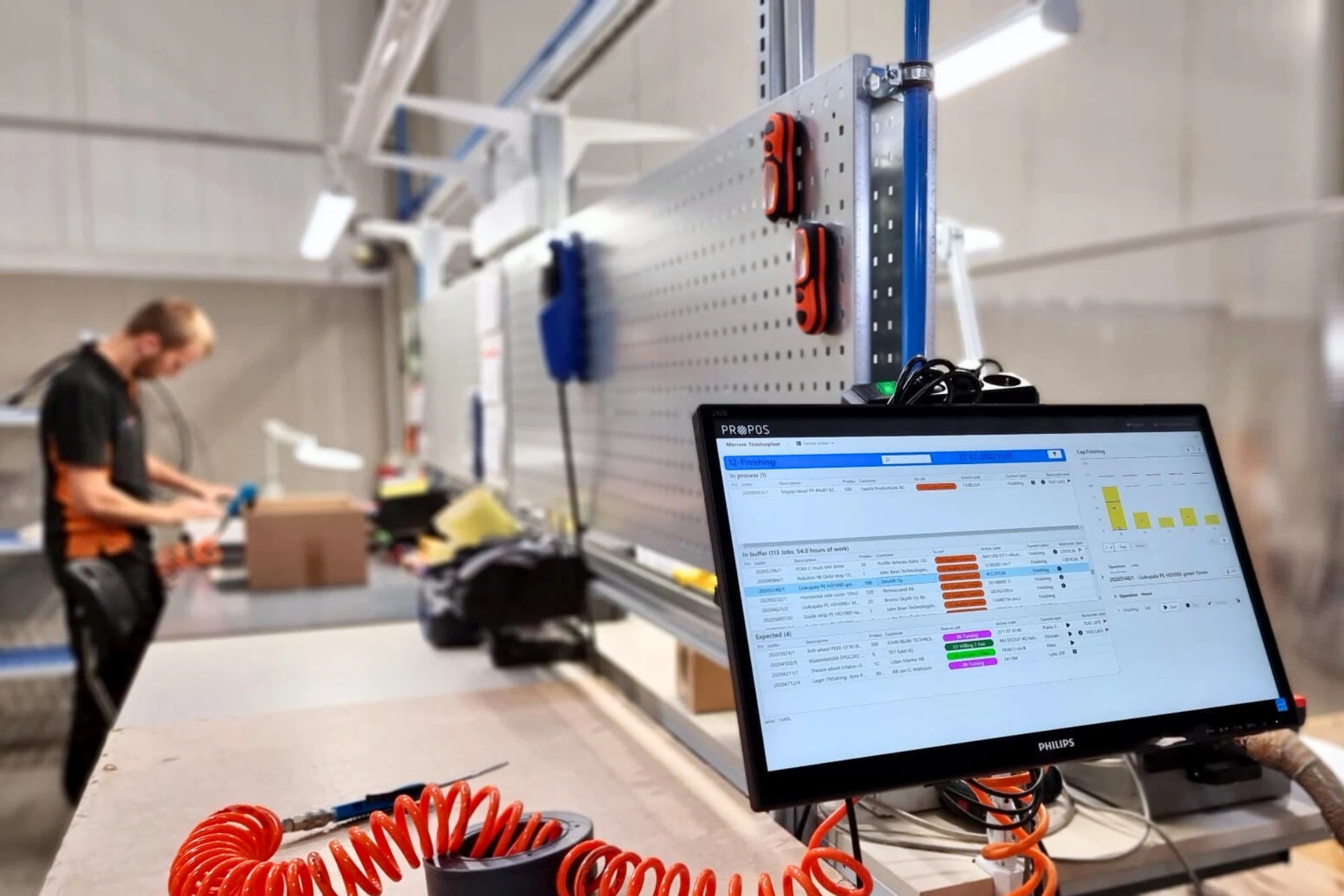Propos is bij uitstek geschikt voor middelgrote maakbedrijven in de kunststofindustrie met een high-mix, low-volume productie. Het jobshop execution system (JSES) plant productieorders volledig automatisch, bepaalt de optimale flow en monitort en stuurt aan op de werkvloer. Het resultaat: kortere doorlooptijden, minder onderhanden werk en een hogere leverbetrouwbaarheid. Efficiënter produceren met minder moeite.
